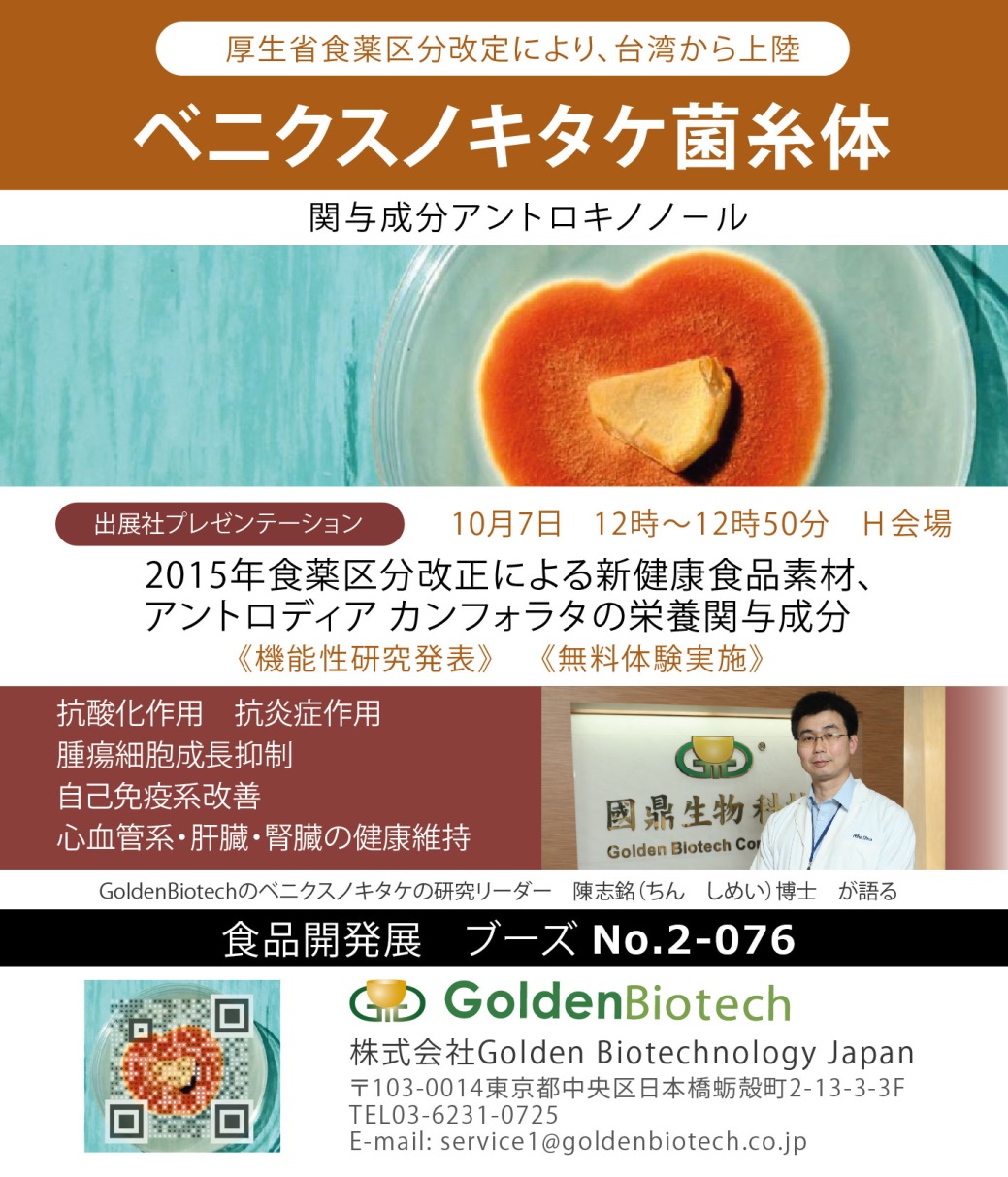 株式会社Golden Biotechnology Japan(本社東京、社長劉勝勇)は、日本の機能性表示食品制度に対応するため、2015年10月からベニクスノキタケ健康食品のヒト臨床試験を開始、2016年中に消費者庁へ届出、販売を開始することを発表します。